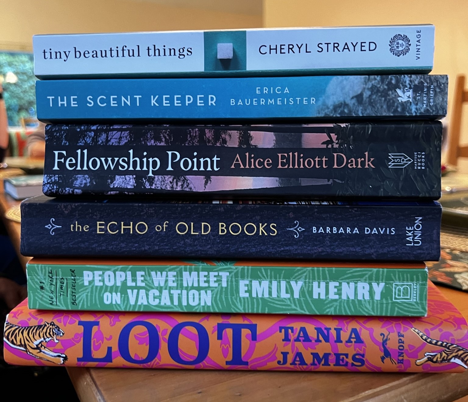 The members read a lot of books over the summer, so rather than jot down titles and authors, Sandie took several pictures of the books brought to the meeting.